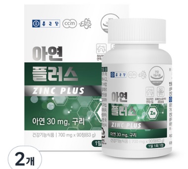 | 단일 성분 선택시) 20% 할인 종근당 아연 플러스 90정, 2개 |
